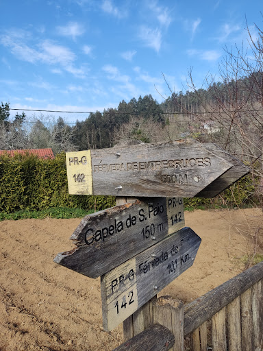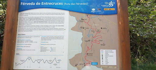 Podéis aparcar junto a la ermita de San Paio. Luego bajáis por la cuesta y veréis las señales que os indican que vayáis a la derecha. Muy fácil y bien señalizado. Distancia desde la ermita: 550 metros aproximadamente. Hay unas mesas merenderos junto a la ermita y en el medio del camino hacia la cascada. Podéis aprovechar y ver a veinte minutos la cascada de Castriz y luego a otros veinte minutos la cascada de Rus. Están en la misma zona. Las cascadas de Rus y Entrecruces están en la ruta senderismo "A ruta das Cervezas" PRG142.