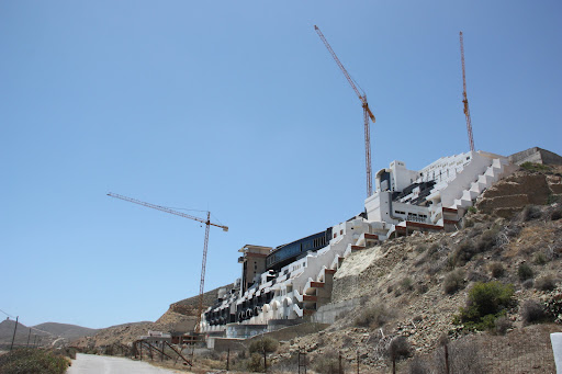 Read moreLa Playa del Algarrobico, situada en el Parque Natural Cabo de Gata-NÃjar, y cercana a la almeriense población de Carboneras, serÃa una más de las múltiples playas de la provincia de AlmerÃa si no fuera porque a tan solo 50 metros del mar se encuentra una inmensa construcción que pretendió ser el hotel El Agarrobico que querÃa acoger a cientos de turistas en sus 411 habitaciones distribuidas en 21 plantas. Cuando, en el año 2005, se habÃa construido al 95% del proyecto su edificación fue paralizada como consecuencia de la denuncia de grupos ecologistas por levantarse sobre un espacio protegido que invadÃa la servidumbre de protección del dominio público marÃtimo-terrestre. En el año 2006 se dicta una medida cautelar contra la construcción del hotel por denuncia de Ecologistas en Acción y Salvemos Mojácar. Tras diversas actuaciones judiciales, en el 2016 el Tribunal Supremo estimó los recursos de Greenpeace y de la Junta de AndalucÃa, declarando el área como ambientalmente protegida no urbanizable. Pese a ello el edificio aún no ha sido derruido afeando una...