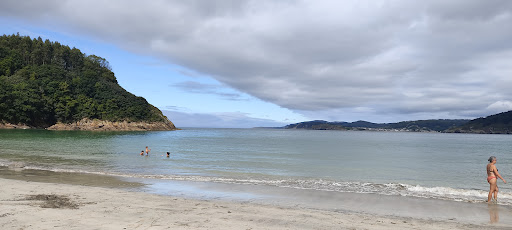 Playa preciosa y paradisíaca. Muy tranquila y sin mucha gente. Agua cristalina y tranquila sin muchas olas(prácticamente ninguna) De muy fácil acceso. A la zona oeste de la playa hay unas rocas en las que saltar, bañarte en las pozas... Muy divertido. Rodeada de bosques y montañas. Duchas con agua templada. Arena negra muy fina y muy suave, se quita rápido. Una playa fantástica para pasar el día, nadar, sesiones de fotos... Es como estar en una...