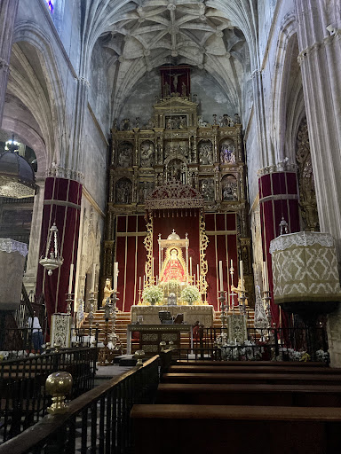 Si quieres conocer algo más, continua con la lectura: La antigua mezquita almohade fue derribada en 1424 para edificar el templo cristiano, cuya primera fase fue finalizada en 1518. Durante este periodo intervinieron en la obra maestros de la talla de Rodrigo Gibaja, y los maestros mayores de la Catedral de Sevilla, Alonso Rodríguez y Antón Gallego. Posteriormente trabajó en la iglesia el maestro Juan de Matienzo, iniciándose a partir de 1525, la segunda etapa constructiva. En ella ocupó un papel destacado el arquitecto Diego de Riaño, a quien debe corresponder el abovedamiento del cimborrio. En 1542 figura al frente de las obras el maestro Juan de Escalona, quien diseñó la capilla de la Virgen de Gracia. Por una serie de problemas relacionados con aspectos económicos y laborales, se solicitó en 1566 la presencia de Hernán Ruiz para que efectuase la tasación de lo que se había construido hasta el momento en estafase. Esta visita dio nuevo impulso a la obra, que fue finalizada en 1578 por el arquitecto Pedro Díaz de Palacios. Por estas fechas se debió de llevar a cabo el asentamiento del coro actual, en el penúltimo tramo de la nave central, ya que en sus elementos constructivos presenta aires manieristas. Desde el punto de vista arquitectónico nos encontramos ante el inmueble religioso más grande de la población, que ocupa la totalidad de una de las manzanas más céntricas e importantes del entramado urbano. En altura destaca la superposición de volúmenes de la construcción gótica del conjunto en la que destacan el cimborrio cubierto por un tejado a cuatro aguas, los contrafuertes externos, arbotantes, pináculos y terrazas planas de las bóvedas, así como la torre rematada por un chapitel piramidal. Los materiales utilizados en su construcción son fundamentalmente la piedra para construcción gótica-renacentista, alternada con el ladrillo y el tapial en los elementos mudéjares y barrocos. El sector más antiguo del templo está formado por el Patio de los Naranjos, que se encuentra adosado a su muro izquierdo. Al parecer formó parte del patio de las abluciones de la antigua mezquita almohade derribada en 1424 para construir la iglesia cristiana. El patio presenta una galería porticada en dos des sus frentes soportada por columnas de mármol o granito rematadas por cimacios, una de las cuales porta una inscripción de época visigoda, considerada como elemento reutilizada por la construcción árabe. El lado norte del patio consta de siete arcos, siendo el central el más amplio y peraltado y los laterales con forma de herradura apuntada. También son peraltados los arcos del lado Este, todos ellos enmarcados por su correspondiente alfiz. La tipología de estos últimos y el despiece de los anteriores señalan que aunque su pertenencia se adscribe a la construcción islámica sufrieron remodelaciones durante las obras llevadas a cabo en el siglo XV. A esta misma época corresponde la capilla de los Apóstoles, situada en el lado Norte, cubierta por bóveda octogonal sobre trompas angulares. Aunque tipológicamente más antigua hay que fechar en el mismo siglo la portada del muro Este, que exteriormente presenta una sencilla arquivolta apuntada, encuadrada por alfiz y rematada por un alero de modillones de rollo, situándose en el muro contrario la torre. El templo gótico, de grandes dimensiones, presenta planta de salón, en la que se inscribe el crucero, constituida por tres naves, divididas en cinco tramos, cabecera plana con dos tramos y capillas adosadas en las naves laterales situadas entre los contrafuertes. Las naves se separan por arcos apuntados que apoyan en pilares de sección poligonal o casi circular, según estén situados en las proximidades de los pies o de la cabecera del templo. Estos últimos presentan multitud de baquetones de distinta altura y grosor, a diferencia de los primeros que presentan una estructura más simple. El segundo cuerpo de la nave central presenta ventanales apuntados góticos con vidrieras que aportan iluminación al interior del edificio. Si te gustado dale un Like, Gracias. fuente IAPH, y...