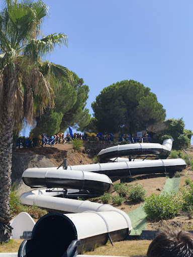 Read moreTotalmente decepcionante, empezamos por el fantástico precio de casi 27 eur por persona, que si lo mereciera pues vale, pero resulta que nada más lejos de la realidad. Primero, abren a las 12:30, bueno...hoy se dejaron caer 10 minutitos más...10 minutitos en pleno agosto haciendo cola a pleno sol que se hacen eternos, la mayoría con niños, un empezar del día fantástico. Luego, tras hacer cola, resulta que no puedes acceder con sombrilla, (señores, especifiquenlo en la información), así que presupones que tendrán sitio de sombra suficiente para asegurar un día medianamente agradable, y al entrar te encuentras todo el césped lleno de sombrillas y hamacas de pago, si no quieres pagar...vete al fondo del recinto a una zona de arena, piedras, piteras y en cuesta arriba, a la sombra de algún pino, y si vas con bebés...suerte!! ,Así que en mi caso, pase por el aro y pagué , no una sino dos sombrillas xq resulta que los 9 eur, solo son para 4 personas, nosotros éramos 7 con dos niños...así que 18 eur más a parte de la entrada. Por si no tenía bastante, mi hija de 8 años no sabe nada, y se va a la zona de niños pero resulta que x poco más de 5 cm le dicen que no se puede tirar del tobogán de niños...en serio??? Pues nada, tiene que ir a la zona de adultos pero como mide menos de 1'40 tiene que ir acompañada por adulto, y si tienes otro niño, en mi caso bebé, del que cuidar...pues te fastidias, te dicen que no es problema suyo. En serio es más seguro mandar a niños de menos de 1'40 sin saber nadar a la zona de adultos que dejarlos jugar en la zona de niños?? Pues para esta empresa resulta que si. Y por seguir añadiendo, la piscina de olas, que son mini olas de 15 minutos súper sucia, te ibas enganchando pelos entre los dedos unos tras otros, totalmente asqueroso, y los baños...olían a desagüe, en ningún momento vi a ningún personal de limpieza, podría seguir poniendo pegas pero ya me canso hasta de escribir, mi mejor decisión es que desde luego, no volveré a ir. Cojere el coche una hora más e iré a Portugal o Sevilla con...