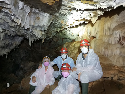 ¡Sencillamente espectacular! Es una experiencia increíble, que de la mano de Rodrigo y Ana se convierte en única. En el centro de interpretación te reciben y atienden muy bien, con una maqueta de ejemplo de las formaciones que hay dentro de la cueva, una maqueta del Geoparque te de da la bienvenida y un vídeo explicativo de la zona y la cueva. Pero el plato fuerte llegó con la visita a la cueva, que este año si que hemos podido entrar. La espera de varios años para visitarla ha merecido mucho la pena, suponíamos de la importancia de que las visitas sean tan restringidas y se hagan con tanto cuidado, pero es que estando dentro lo entiendes todavía más, te sientes como un espeleólogo en el interior de la tierra, no solo tienes espeleotemas a pocos centímetros de ti, sino que en muchas ocasiones tienes que tener sumo cuidado de no tocarlos y dañarlos accidentalmente, es sin duda un regalo de la naturaleza que esperamos siga otros miles de años así de bien. La visita está muy bien organizada, dura alrededor de una hora, pero el tiempo se pasa volando, te equipan con botas, mono, casco y mascarilla para alterar lo menos posible el ecosistema interior, el guía es muy majo y aparte de explicarte la parte geológica de la cueva, se nota su pasión por la naturaleza y por hacerte sentir la importancia natural de la cueva. La visita no es apta para todo el mundo, hay que estar en forma, porque muchos tramos son muy estrechos, hay que estar mucho tiempo agachados incluso alguno reptando. Las cámaras, móviles y demás objetos personales debes dejarlo fuera, es entendible porque sino la visita sería caótica si el grupo anda pendiente de grabar o hacer fotos. El guía es quien te hace la foto de recuerdo. Muchas gracias a todas las personas implicadas en hacer posible esta...
