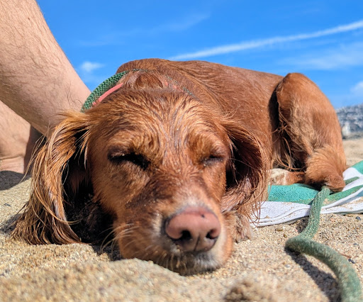 Read moreWe drove all the way from London to enjoy a holiday in the area with our dog. We came to the area for dogs most days and loved it. Other owners are mostly respectful and pick up dirt. There are no toilets or beach bar at this end. You need to drive or walk to the start of the beach, which we were happy to do. The beach is quite wide and approximately 300m long so there is plenty of space. The sea was clear and lovely to swim in. It was shallow for a long way out. It gets windy every day in the afternoon but not so bad that sand is blown around. We will definitely come back again some day. Fabulous beach for dog owners...