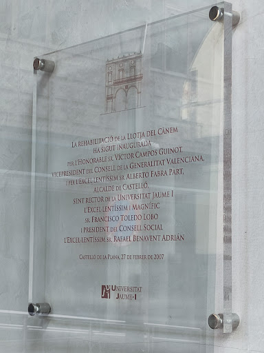 Read moreConstruido a principios del siglo XVII como Lonja del Cáñamo, es obra de Francisco Galiança, en un estilo renacentista. A finales del XVIII estaba semiarruinado y el piso superior fue vendido a particulares y convertido en vivienda; la planta baja fue a su vez vendida por el ayuntamiento en 1906, siendo entonces restaurado el conjunto por sus propietarios. En 1999 el edificio fue adquirido por la Universidad Jaume I, que organiza en él diversas actividades y tiene una librería en la planta baja. Es uno de los edificios emblemáticos...