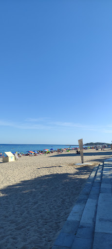 Platja de sorra gruixuda, per tant, portar roscador per la sombrilla si no volem que marxi volant un dia ventós. També enfonsa molt ràpid i no toques de peus amb pocs metres dins l'aigua... vigileu doncs la canalla petita! Depenent de l'any hi ha pedretes que dificulten la sortida de l'aigua als veterans.... però amb escarpins s'acaba el problema! Una llàstima que al 2024 i sense sequera extrema doncs no hi hagin instal·lat les dutxes d'aigua dolça. Disposa d'un passeig marítim que uneix els camins de ronda del nord i sud de la platja, on pots sortir a córrer, prohibit a patinets, bicicletes i derivats. Port nàutic a l'extrem sud i activitats diverses com vela, windsurf, torpedo bus, motos d'aigua, etc... en diferents punts de la platja. Diferents punts de gastronomia a escollir al llarg del passeig marítim, a primera línia de mar. Tardes amb ombra a la sorra produïda pels apartaments de primera...
