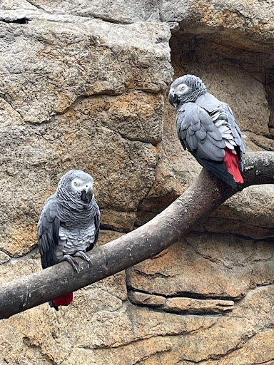 The parrots are tame and dill eat from your hand/sit on your head.