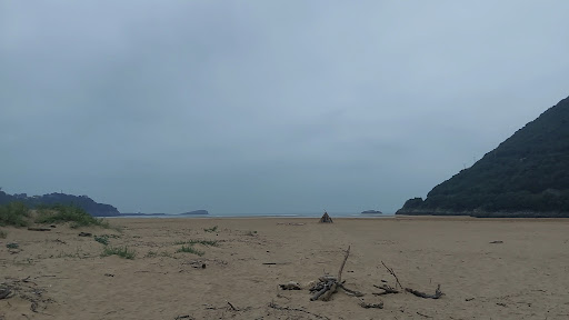 La playa es preciosa por el paisaje rodeada de montañas muy tranquila. Le pongo tres estrellas por varias razones: 1-Está poco cuidada llena de palitos, ramas y restos de las mareas 2- Con las mareas hay una distancia abismal de la arena al agua cuando baja la marea, tienes que atravesar por una especie de pozas/ riachuelo que se hace a medio camino que son bastante profundas de repente(ojo con los niños), te hundes en la arena y tienen bastante corriente 3- Uno de los días iba yo tan tranquila buscando conchas y de repente vienen dos perros pequeños ladrándome y enseñándome dientes, la verdad me asuste, a lo mejor sin darme cuenta me acerqué demasiado a donde estaban y sintieron que debían defenderse, no lo sé, no fui conciente....el caso es que me asusté porque la intención bajó mi perspectiva fue que si los dueños no hubieran estado cerca y les hubieran llamado me habrían mordido. La escusa de los dueños fué que es que es zona donde se pueden llevar los perros y finalmente al verme la cara de susto se disculparon pero con pocas ganas. A ver, me parece muy bien que sea zona de perros, pero antes será zona de personas, niños y familias no?? Y los dueños de perros tendrán que estar al tanto de ellos no?? No me gustó ese detalle. Por otro lado, se puede llegar andando desde Sonabia por un camino al lado de la carretera en color verde para peatones, pues está hecho polvo, en tramos derruido y super mal...