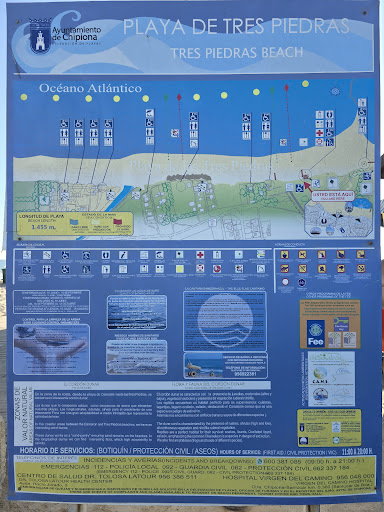 Read moreLlevo toda la vida yendo a las playas de Chipiona, y teniendo en cuenta que la playa de las Tres Piedras está cerca, nunca me había acercado hasta el otro día. La verdad es que no está nada mal. Es una playa muy familiar y tiene varios chiringuitos en los alrededores. También tienen baños públicos, algo que se agradece, ya que es difícil encontrarlos en algunas playas, y si los encuentras, seguramente tienes que andar muchísimo (donde estuvimos nosotros, estaba justo al lado). La única pega que le pongo... Qué hay que ir bastante temprano para encontrar sitio, tanto de aparcamiento como en la misma playa. También que cuando sube la marea, te puedes ver con los tiestos del vecino encima de los tuyos, porque el espacio que queda de terreno para las sombrillas y sillas es muy pequeños teniendo en cuenta la cantidad de personas que van a esta playa. Además hay muchas familias que montan carpas a modo de sombrilla y montan su propio chiringo allí, lo cual hace que haya menos sitio aún, pero oye, q yo si pudiera, también lo haría, q las sombrillas en ocasiones solo sirven para que las bebidas no sé calienten, porque tapar, llega el momento en que tapan poco. Yo la veo bien, incluso para los niños, aunque hay que tener mil ojos con ellos, porque pueden perderse bastante rápido entre la marabunta...
