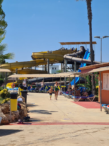 Read moreSpent half a day here with my partner and 3 boys. We really enjoyed ourselves. Very expensive if you go before 14:30. 20 euros each for adults and 12 euros each for kids, age 3 and under are free. If you go at 14:30 the price drops to a more reasonable 14 euros for adults and 9 euros for kids, 55 euros total. Aqua rock closes at 18:00 so you will still get 3 & a half hours, which (believe me) is plenty of time. There are shops, cafe's and restaurants inside, but you might want to do what we did and take a picnic and your own drinks. You can hire sunbeds for €3:50 each, but there is some grassy areas that you can sit on aswell. There are 4 big slides for adults and bigger kids. 2 slides that don't need any rings to go down on and 2 that require inflatables. You just collect them at the bottom and carry them up with you. Practically no waiting to use the slides. Small queues of a few minutes. There is also a small kids area, with shallow pools and tiny slides as well as a bigger slide for kids who are not yet ready for the bigger ones. My kids are aged 6, 8 & 11 yrs and all of them went down the adult slides either on their own or with me on a double ring so nothing too daunting, Just good fun. There is also a small wave pool that activates every hour and is good fun. Apart from the price, the only downside was the over zealous lifeguards that blow their whistles for no reason at all. Finally be careful with the location. It is not clearly signed. We drove around looking for it for some time. At no point was it made clear to us that it is actually situated at the rear of the Mirinda Gardens hotel. I was told that some holiday companies offer free entry with their booking...