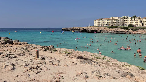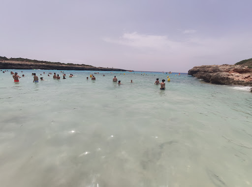 Read moreBusy but nice beach. Very gradual gradient and lovely gentle waves. Hired pedalo which was great fun. Just around the corner is another cove (good for snorkelling) which is also beautiful. Look out for warning flags and 'jellyfish flags'-apparently they get blown in now and again- "follow the locals" best advice we had-they will always know when is safe and when not. Well worth a visit if nearby. Beautiful harbour of Cala en Bosch five minute walk away, lots of lovely shops/ restaurants and a time but nice...