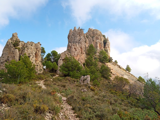 Vom Parkplatz an der Font Toni (kurz vor Colfrides) geht man ein Stück an der Straße entlang zurück bis zu einer Asphaltauffahrt. Auf dieser hält man sich immer rechts, auch wenn das kontraintuitiv ist, da man das Castell links oben sieht. Man passiert zunächst viele Oliven- und vor allem Mandelbäume, später ein Kiefernwäldchen (auch hier: nach rechts abbiegen!). Währenddessen immer nach gelb-weißen Wegmarkierungen Ausschau halten, weil man irgendwann auf einen kleinen "Ziegenpfad" abbiegen muss. Der bringt einen dann endlich in die richtige Richtung und allmählich höher und höher. Schließlich erreicht man den Kamm und schaut auf die andere Seite (und sieht den Penon in Calpe!). Jetzt sieht man das Castell nicht mehr, ist aber ganz nah. Noch etwas Kletterei (wirklich!) und man ist oben. Zurück auf dem gleichen Weg. Oder man kann sich an der Weggabelung im Kiefernwäldchen entscheiden, rechts zu gehen - führt beides zum Ausgangspunkt zurück. Wir haben 5 Stunden gebraucht, haben uns aber auch nicht beeilt und viele...