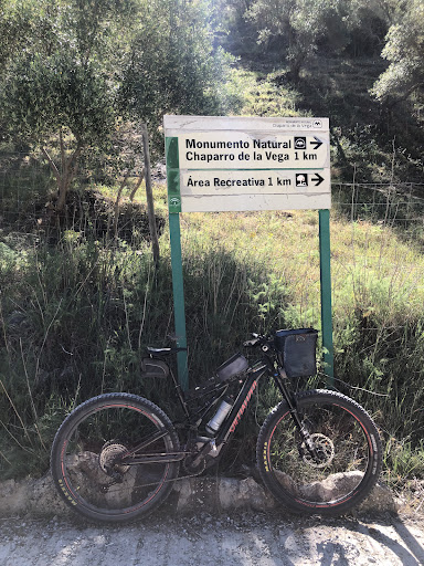 Ciclismo MTB.Monumento Natural. El Chaparro de la Vega lo compone una espectacular encina, especie conocida en esta zona como chaparro, de más de 200 años de antigüedad. Alcanza unos 13 metros de alto y un diámetro de copa de más de 30. Está situado en el entorno de la Sierra Sur de Sevilla,en el municipio de Coripe. Sus sobresalientes dimensiones hacen de este ejemplar una clara referencia para los lugareños, que lo han hecho testigo de su vida cotidiana. Bajo su sombra, en su área recreativa, se desarrollan diversas actividades lúdicas y festivas, entre las que destaca la Romería de Fátima a mediados del mes de mayo. Desde hace unos años y dada su singularidad, sus inmediaciones sirven como escenario de actividades relacionadas con la educación...
