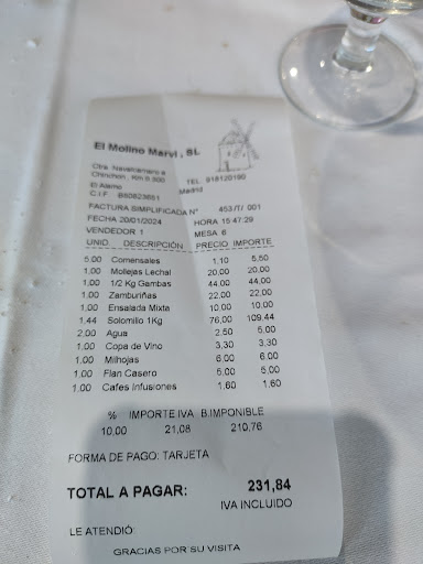 Read moreHabía oído buenos comentarios de este restaurante y no nos ha defraudado. Fuimos en familia 5 personas. Hay que reservar porque sino no es fácil encontrar mesa. Son especialistas en parrilla sobre todo de carne y por eso nos inclinamos en ir a lo seguro y de lo que tanto puede presumir, una carne de muy alta calidad bien cocinada en parrilla. Tomamos 5 solomillos uno por comensal, de primeros a compartir zamburiñas, gambas a la plancha medo kilo, mollejas con setas y ensalada mixta con los solomillos. Todo super rico. Los camareros un 10, super atentos y encantadores. Muy rápido en servir. Ah los postes..la miloja de nata y crema de las mejores que nunca probé y la tarta de queso se me caían las lágrimas de lo rica que estaba, además de cantidad muy bien. En conclusión me ha encantado y volveremos más que seguro. No hice fotos de la comida, teníamos tanta hambre que no me dio tiempo. Pongo la foto de la cuenta..no es un sitio barato pero la calidad lo merece. 45 euros por barba aprox. Se aparca de lujo. Felicidades al restaurante de toda mi familia, nos...