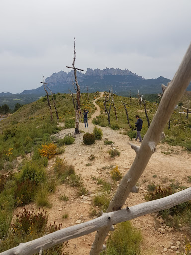 Read more"En 2015 se produjo un incendio, entre el km 5 y 6 de la carretera BP-1101, en el municipio de Òdena. Las cruces constituyen una intervención en este bosque calcinado, realizada con los mismos restos. Este bosque estaba situado entre entre el municipio de Sant Salvador de Guardiola (Bages) y El Bruc (Anoia), en el límite del parque natural de Montserrat, el artista y bombero Marc Sellarés transformó los pinos quemados aprovechando que aunque estaban ya sin vida mantenían el tronco acoplando las mismas ramas horizontalmente, convirtió los árboles quemados en grandes y visibles cruces quemadas. Un cementerio de cruces para concienciar acerca del desastre que suponen los incencios forestales. 1293 es el número de cruces, las mismas que hectáreas calcinó el fuego. Al cabo de un año del incendio, Marc Sellarès plantó la cruz número 1293 ante una gran expectación mediática, la siguiente fase del proyecto consiste en replantar el bosque con vegetación más adaptada al calentamiento global y con mejor resistencia a los incendios, como contraste se pueden ver estos pequeños pinos al lado de la madera negra de los árboles...