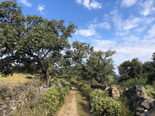 Read moreSe trata de un sendero circular con 2 opciones, una de 5,8 km y otra de 7,5 km para realizar a pie. La primera opción es la de mayor valor paisajistico, discurre en su mayor parte por un sendero limitado lateralmente por muros de piedra en un paisaje con dehesas de alcornoques donde podemos contemplar cochinos, caballos y ovejas, además de una rica avifauna. Al inicio, en el mismo pueblo, en la fachada del antiguo matadero se encuentran 2 paneles informativos, uno de ellos el de los Callejones. Los primeros 3 km es una suave ascensión para salvar una altitud de unos 140 m y el resto es una bajada un poco más...