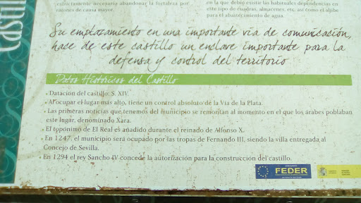 Si quieres conocer algo más, continua con la lectura: Castillo construido en el siglo XIII por el concejo de Sevilla para lado proteger las poblaciones de las partidas de bandidos que infestaban la zona, controlar la Vía de la Plata y mantener alejados a los templarios y santiagueños de su territorio.