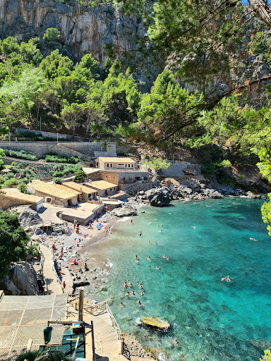 Acceso: Para llegar a este paraje natural, hay que superar un fuerte desnivel. El puerto de Sóller se sitúa a unos 30 kilómetros al oeste de la playa, aproximarse a la playa desde el mar es una experiencia inolvidable.