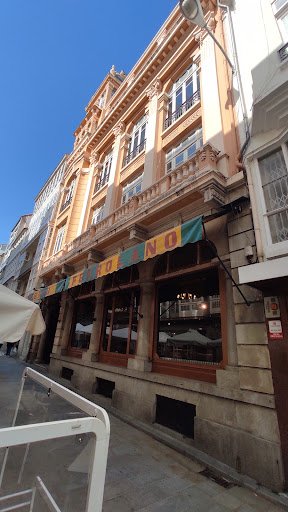 Read moreInteresante edificio con mucha historia y que merece la pena conocer. Ferrol pertenece a la ruta del modernismo ya que conserva al menos 20 edificios en este estilo, muchos construidos por el arquitecto vigués Rodolfo Ucha. En 1920 comienzan las obras del Casino y en 1925 se le encarga al pintor Felipe Bello Piñeiro, pintar la Sala de Conversaciones. Comienza recubriendo el yeso con pintura al temple primero y al óleo después. Los colores más usados son los tonos tierra y verdes, con inspiración oriental, con ramas, árboles, semillas y flores en amarillos, rojos...pero también hay alegoría a San Andrés de Teixido. También si observamos bien podremos leer una dedicatoria. Esta sala fue lugar de encuentro de políticos, empresarios y sobre todo militares, hombres sobre todo y fumadores, por lo que las pinturas se dañaron, oscurecieron y en los años 80 se hizo una limpieza y restauración por un...