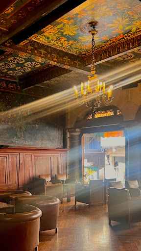 Un edificio precioso, con un interior que sin duda merece la pena ser visitado. Lo mejor -con diferencia- es la sala de reuniones privadas que está justo al lado derecho de la entrada, conocida como “la pecera” (porque allí en el pasado se reunían a debatir “los peces gordos”). Está súper bien conservada, e impresiona mucho ver las pinturas de sus paredes y del techo, que fueron realizadas a mano por el artista Felipe Bello Piñeiro. Sobre esta sala, decir que también vale mucho la pena escuchar la historia completa detrás del origen de estas pinturas, y la historia tan romántica y trágica detrás de la vida de pintor…