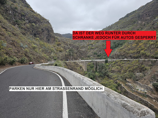 Parken kann man entlang der GC-350, Richtung Buenlugar, wo es ca 4-5 Stellplätze gibt.(28°06'39.1"N 15°34'12.2"W)
