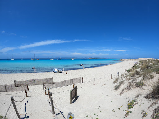 Read moreAquí te deja el bus que viene de Puerto Sabina en Formentera , caminas unos 500 m y tienes las playas de Illetes, todas en fila y con arena espectacular , había un poco de algas pero nada que no puedas esquivar . Había una pequeña medusa no peligrosa según él rescatista, agua cristalina que hace que Sea fácil...
