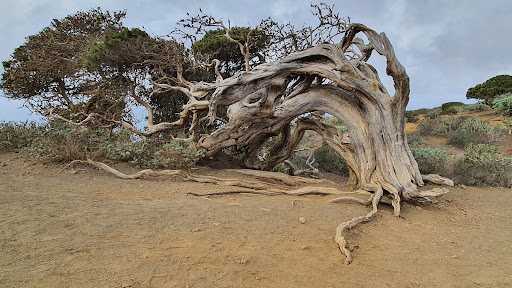 Read moreSabina de El Hierro (Latin: Juniperus phoenice). It is a shrub or a small tree. In the Canary Islands, it reaches a height of 2 or no more 3 meters. It usually occurs no higher than 1,400 m a.s.l. Resistant to frost and dry climate. The tree doesn't need much water. The shape of the tree arises due to strong winds. The wood quality is very good. In the past, furniture and basic tools were made of wood. A lot of trees were used for house fuel. That is why there are not many trees left in all Canarias. These trees occur on El Hierro, La Palma, La Gomera, Tenerife and Gran Canaria. Trees do not occur on Fuerteventura and Lanzarote.