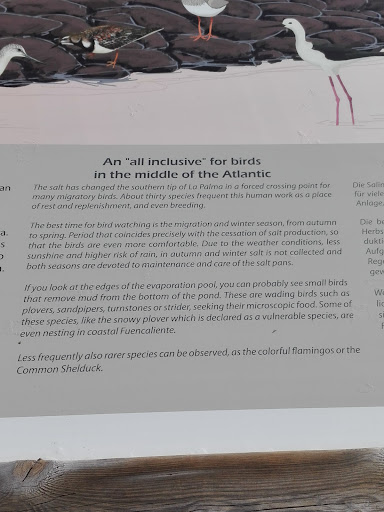 Read moreA self guided tour around the salt pans with information boards that explain the salt production. Its free to walk round and has lovely views over the rugged Atlantic coast. It was quite a long windy road down through the banana plantations. The walk was gravely, muddy/slippy in places where it was wet from the salt pans and rain and some bits were a bit rocky so wear sensible footwear. It was interesting to see little pyramids of salt lined up. Some of the pools looked pink. Their was a few different species of birds around and their was plants in the volcanic rocks around the restaurant/cafe which looked pretty. Their was a gift shop selling salt products. It is a short walk from the lighthouses and carparks and...