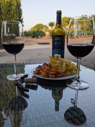 Read moreHa sido la peor cata de vinos en la que hemos estado. Ya sabíamos que los vinos no iban a estar “muy allá” porque antes de ir sabes que la fama es por Andrés Iniesta el jugador, no por la calidad del vino. Aún así nos sorprendió para mal: 4 vinos a probar. Probar literalmente es mojarte los labios con 4-5 gotas de vino. 1 trozo de queso por persona (buenísimo eso sí porque es VegaSotuelamos). Te recomiendo que lo raciones a bocados para cada vino que medio pruebes. 1 sala enorme con mesas y sillas que en lugar de utilizarlas lo que hicieron fue sentarnos a los 16-17 que éramos en la cata en forma de U. Sin nada donde apoyarnos. Esto no lo entendimos porque la sala estaba lista para usarse y estuvo vacía. ¡Ah! Y con los abrigos puestos.