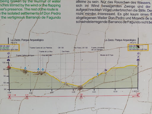 There is a nice circular hiking trail that leads from La Zarza to Don Pedro village. For experienced hikers, 4h 40min hike. But you can take a shortcut. Once you reach an asphalt road (Cruz de Gallo) instead of going down to the village, just follow the signs to La Zarza. It will lead you back to the circular path in the other direction. Visit Mirador de Dona Pola on the way. This shortened circular path will take 2h 30 min and cca 300m of...