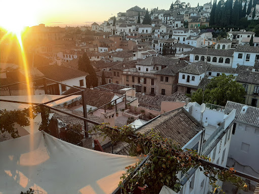 What a wonderful spot!! It seems that you suddenly came into a plaza of a village, hidden and quiet... The cobblestone floor, the old balconies, the wooden doors, the fuchsia bougainvillea... And suddenly (!) on your left hand side, the Albaycín neighbourhood so close to your fingers that it seems you could touch it! It's one of my favourites places to stop, relax and see how the neighbourhood sounds when it's early in the morning... like the far away church bells, the doggies, the neighbours chatting, sometimes a street...
