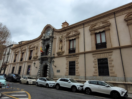 Read moreDe su importante fachada, destaca su gran portada de tres cuerpos de altura y su balcón central, que cuentan con arcos y columnas salomónicas de mármol de Elvira. Sobre el balcón principal se levanta su tejado triangular, dejando libre el tímpano sobre el que se colocó un busto de Carlos III, sustituido posteriormente por un reloj. El resto de la fachada aparece ornamentada con hornacinas con jarrones, mientras que el friso muestra relieves con trofeos de guerra. En su interior se conservan valiosas obras de arte de imaginería de la escuela granadina de comienzos del siglo XVII, así como numerosos lienzos de...