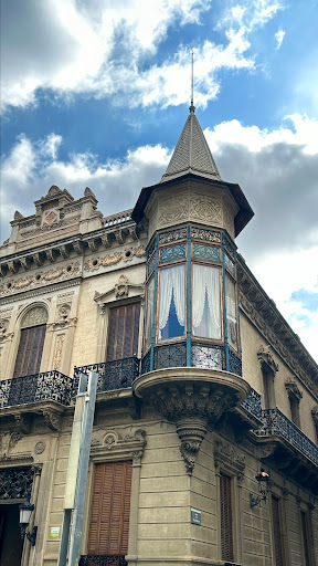 This magnificent building, designed by Francesc Mariné and Martorell in 1902 in Granollers, features a notable formal element: a corner tribune with a circular design, polygonal stained glass windows, and a...