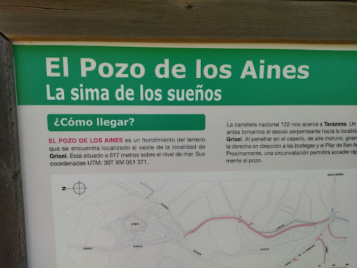 Read moreUno de los parajes naturales más singulares de la Comarca de Tarazona y el Moncayo es la Sima o Pozo de los Aines. Imponente cavidad kárstica cuyas, características, tradicional leyenda, pasamos a El Pozo de los Aines es una dolina formada por el hundimiento de estratos calizos y yesosos, debido a la acción de las aguas subterráneas. En opinión del Dr. Francisco Pellicer, profesor de Geografía Física de la Facultad de Filosofía y Letras de Zaragoza, el pozo se formó no hace mucho tiempo, geológicamente hablando, posiblemente en la baja Edad Media. Aunque otras fuentes le dan más antigüedad al existir en su interior un camino que bajaba hasta el fondo empleado para extraer agua para riego, y haberse encontrado en sus proximidades restos arqueológicos de épocas romas y musulmana. Es citado por el geógrafo Juan Bautista Labaña en su “Itinerario del Reyno de Aragón (1610-1620”. El terreno donde se encuentra perteneció durante muchos años, como villa o torre de recreo, al Arcediano de Tarazona y en la actualidad la finca de olivos donde se encuentra es propiedad del Ayuntamiento de Grisel,el nombre de Aines tiene su origen en el árabe “ayn”, manantial o fuente. Es un cenote, de Aragon, muy profundo no tan espectacular como los de República Dominica o Mexico, pero se puede disfrutar ya que trasmite paz y armonía aunque en verano hace mucho calor dentro se está muy bien, tiene. Un aparcamiento donde podéis dejar el coche y seguir andando, tienes mesa que puedes almorzar y pasar una...