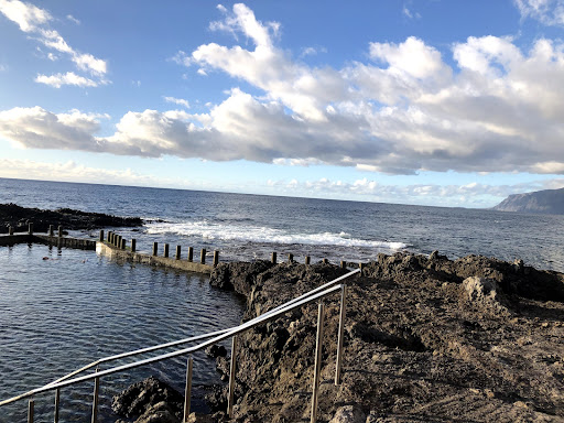 A gorgeous natural seawater "pool". It's perfect for swimming and snorkeling; there are lots of anemones, fish and crabs. It's pretty shallow and slippery near the larger staircase near the showers, if you walk towards the ocean (facing Los Gigantes) there's a metal ladder that will take you to the deeper part and you won't have to scrape your shins (you're welcome). You can access this pool from the ocean front foot path that runs between La Arena and Alcala. You can park along street and walk to the trail, we parked on TF-47 where there were other cars and walked on a dirt construction driveway...