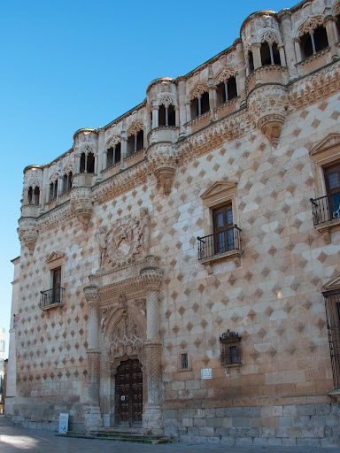 Read moreUn impresionante edificio único en su género de estilo gótico isabelino o gótico tardío con algunos elementos propios del renacimiento. Fue diseñado por el arquitecto Juan Guas en el s. XV. La fachada se apropia de elementos andalusíes con su decoración horror vacui con puntas de diamante que le otorgan un dinamismo diferente al canon habitual de fachadas lisas. Dentro alberga el museo provincial de Guadalajara que contiene auténticos tesoros arqueológicos que van desde útiles de la edad de piedra, esculturas romanas del s.I d.C., hasta joyería medieval. Sorprende su patio interior, ya que los patios-claustro de este tamaño eran algo poco común en la arquitectura civil de Castilla. Eran más comunes en los monasterios y conventos, así como en la arquitectura de Al-Andalus, de la cual, el Palacio del Infantado tiene mucha influencia. En dicho patio, podemos encontrar las esculturas de 48 leones, todos diferentes entre ellos. También podemos encontrar las pinturas y los frescos de Rómulo Cincinnato, con representaciones de motivos religiosos, así como mitológicos o bélicos. El techo original del edificio era un artesonado de madera con una rica decoración en pan de oro. Lamentablemente, la gran mayoría del techo quedó destruido a causa de los bombardeos de la aviación Cóndor de los nazis. En definitiva, es un edificio lleno de historia que no puede faltar en nuestra visita a...
