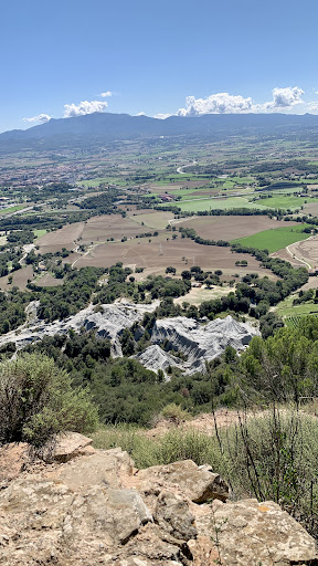 Unes vistes espectaculars, però potser perquè tothom en parla maravelles i que hi puja tot passejant sovint i perquè potser tampoc varem pujar pel lloc més indicat per desconeixença, no ho vem trobar tan bufar i fer ampolles com ens havien vengut. Vam pujar pel camí del bosc encantat i tot hi que no hi ha molta estona de pujada, el camí si no ets de caminar gaire o tens problemes de genolls o vas amb canalla molt petita no aconsellaria pujar per aquest camí per allà. Molt desnivell amb troncs pel mig. Un cop a dalt, sí, unes vistes, una...