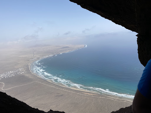 This place has also been reported as Cueva de las Cabras. You can enjoy very scenic and peculiar views over Playa de Famara from this cave situated right inside the Famara cliff wall. You can reach them from the footpath along the top of the cliff. It’s about 5 minutes walking southwards from the mirador El Bosquecillo. However the entrance is not easily visible from the footpath: you’ll have to walk very close to the cliff edge and maybe use Google Maps to check your position. The entrance seems just a drop along the cliff among a few rocks. But if you look closely, you will find some steps and a sort of path leading you to the cave along the cliff wall. The path is always quite protected and it is far more safe than it looks from the top. There are a few quite tall steps, so you’ll have to hold onto rocks with your hands and maybe sit down to descend. But even so, you are hardly ever at risk of falling down the cliff, just pay attention not to slip and hurt yourself against a rock. The effort...