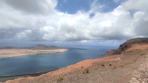 From here we can see the slopes of the Risco de Famara, and then we see El Río: a narrow strip of sea that gives the viewpoint its name and separates Lanzarote from La Graciosa, the eighth Canary Island.