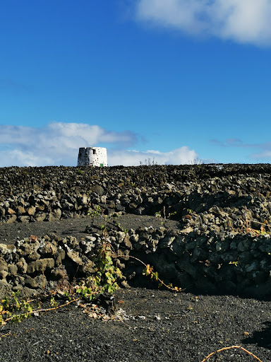 A short hike of around 1.6Km (3.2Km there'n'back) to visit the lower rim of the caldera via a myriad Geria (a shallow pit surrounded by a semi-circular volcanic stone wall designed to protect and grow grape vines).