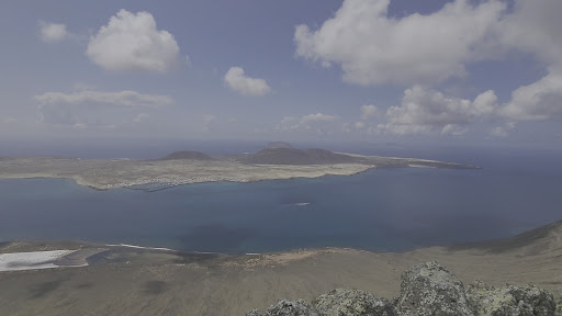 From here we can see the slopes of the Risco de Famara, and then we see El Río: a narrow strip of sea that gives the viewpoint its name and separates Lanzarote from La Graciosa, the eighth Canary Island.