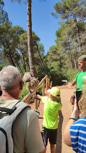 El Centro de Fauna Silvestre de Collado del Almendral está en el Parque Natural de Cazorla, Segura y Las Villas en Jaén (España). También conocido como el parque cinegético, un lugar donde montado sobre un tren podrás ver animales semisilvestres sueltos por un recorrido de 5 km.y unos 45 min. con mucho terreno para moverse. Es increíble poder ver de cerca a menos de 10 cm. a ciervos, gamos, muflones o cabras montesas. Y por si fuese poco, la visita continúa 45 min. más con una exhibición de aves rapaces como Águila, Lechuza, Búho, Halcón... Pudimos hacernos fotos con el búho y con la ayuda del guante del cetrero sostener a diferentes aves tras unos pequeños vuelos. Para ver a las aves hay que subir andando parte de la montaña por un sendero, una ruta de 1.500m. en total son mucha dificultad. El último tramo hasta el último de los 3 miradores si que tiene una subida más pronunciada. Pero es opcional. Si vas a visitarlo te conviene reservar por teléfono oreviamente, además de para asegurarte la plaza, conseguirás un mejor asiento. Ya que en el orden para subir al tren primero avisan a las reservas. Mucha gente corría a posicionarse en la cola para subir al tren, pero primero el guía fue llamando uno por uno a las reservas. La visita comenzaba a las 10h pero te recomiendan estar 15 min. antes para pasar por la recepción, hacer el pago y que te entreguen las entradas y un mapa del recinto con la ruta y los animales que verás. El circuito para ver los animales se realiza en tren y tendrás los animales a escasos centímetros, no saques la cabeza del tren o ¡rozarás con alguno de sus cuernos! ¡Un día muy entretenido y perfecto para hacer en familia! En la entrada al parque además de los aseos, tienen una cafetería y una tienda con muchos souvenirs del parque de todos los precios, desde imanes, flautas, gorras, peluches, ropa...