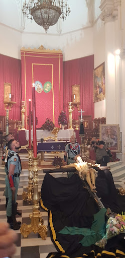 Read moreEl templo es un edificio de tres naves en cuya cabecera se abren capillas absidiales. Las naves están separadas por tres arcos de medio punto que rebajan a los arcos apuntados originales. Existe una única capilla lateral en la nave de la Epístola. En los pilares que separan las naves podemos encontrar dos lápidas conmemorativas. La más antigua, de mármol blanco, recuerda la bandera ganada a los turcos por el capitán Andrés Garrocho el 16 de julio de 1537. La otra recuerda el asesinato del sacerdote José Páez Hernández en agosto de 1936. La nave central se cubre con bóveda de cañón con lunetos y arcos fajones, mientras que las naves laterales presentan bóvedas de arista de madera que al estar incompletas permiten contemplar la techumbre original. Presenta dos puertas de acceso. La principal, situada a los pies del templo, se abre a un pequeño vestíbulo situado bajo el coro. La puerta lateral se abre en la nave del Evangelio frente a la capilla de la Hermandad del Nazareno. Las naves se iluminan por una serie de vidrieras realizadas en 1939 por La Veneciana, a excepción de la dedicada a San Alfonso María de Ligorio, obra de Santa Rufina en...