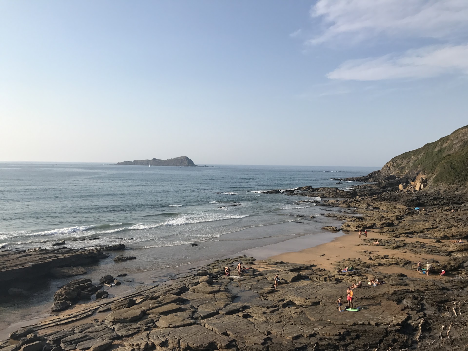 Desde la misma carretera se baja por un camino corto con pendiente considerable hasta la misma cala. Es un sitio muy tranquilo. Con marea alta se queda pequeña, pero con marea baja y si son mareas vivas la cosa cambia. De esta forma por la orilla se puede dar un enorme paseo sin bañador hasta la vecina playa de Laida que es al contrario de Antzoras una...