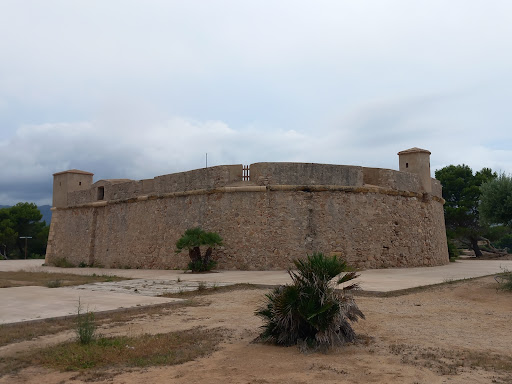 Eine Gebäudegruppe zwischen dem „Coll de Balaguer“ und der Mündung des Ebro , die einen obligatorischen Übergangspunkt sowohl für Land- als auch für Seewege darstellt. Es besteht aus den Überresten einer mittelalterlichen Burg und einer modernen Festung. Die Burg ist in einem Ruinenzustand, da in einigen Bereichen nur Fragmente des unteren Teils der Mauern und in anderen nur Spuren erhalten sind, die die Form des Grundrisses definieren und auf die schlechte Konsistenz der aus Mauerwerk errichteten Fabrik hinweisen . Der schlechte Zustand dieses ältesten Komplexes ist einerseits auf die Zerstörung zurückzuführen, die er erlitten hat, andererseits auf die Tatsache, dass seine Steine zum Bau der benachbarten Festung aus dem 18. Jahrhundert verwendet wurden. Die Reste der Burg haben einen dem Gelände angepassten trapezförmigen Grundriss. An der Süd-, West- und Nordseite sind Teile der Mauer erhalten geblieben . Sie können einen Teil der Mauer sehen, der der südwestlichen Ecke entspricht und aus großen, gut behauenen Steinblöcken gebaut ist, die praktisch auf Meereshöhe beginnen und an dem teilweise erhaltenen Felsen befestigt sind. Die mittelalterliche Konstruktion umfasst wahrscheinlich einen beschädigten Turm und Reste der Innenschiffe in den unteren Ebenen. Die Struktur des Komplexes ist jedoch dank einer Beschreibung aus dem Jahr 1576 bekannt. Es handelte sich um einen befestigten Körper mit quadratischem Grundriss, dessen Mitte ein Innenhof bildete, um den herum der Schlafsaal, die Kirche und andere typische Räumlichkeiten eines Klosters verteilt waren, insgesamt also acht Räume. Auch ein Wachturm wird erwähnt.