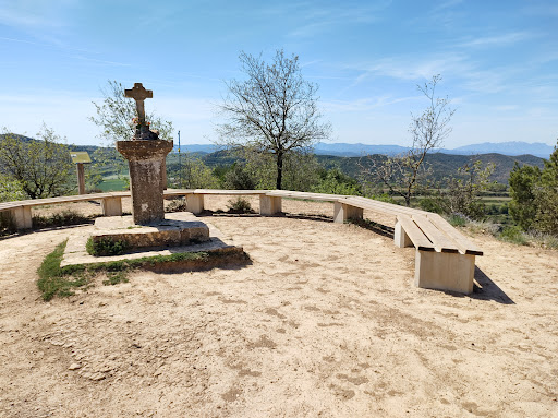 Sitio estrategico geológicamente y paisajísticamente Aunque pillamos mal día, con niebla, este sitio se ve que es digno de ver los días soleados, pues ves casi todos los sitios emblemáticos de Cataluña, como pirineos, algunos parques naturales, Montserrat, etc... Además, está a más de 1000 mts de altura, pero llegar a él casi sin darte cuenta y ya estás. Tiene un punto geográfico que se usaba antiguamente para realizar mapas topográficos y es el punto más elevado de todo el municipio de l'estany. Además, hay bancos para sentarse y una fotografía antigua. Visita obligada para los...