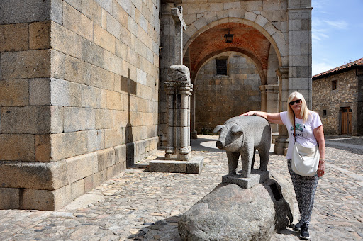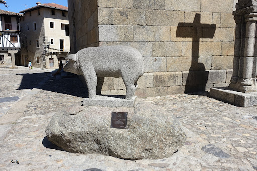 Read moreEn una esquina la Iglesia parroquial Nuestra Señora de la Asunción en la Alberca nos encontramos con esta simpática escultura de piedra conocida como "El marrano de San Antón" Nos apresuramos a hacernos la obligada fotografía. Indagando nos contaron que cada año por tradición bendicen un cerdo en el mes de Enero y lo sueltan. El cerdo e pasea tranquilamente por las calles las calles de la localidad alimentado por los vecinos hasta el el 17 de Enero festividad de San Antonio (San Antón) cuando es rifado ante las puertas de la iglesia y los beneficios obtenidos se destinan a una ONG. De lo que no me he enterado es si en la matanza participan los del pueblo o...