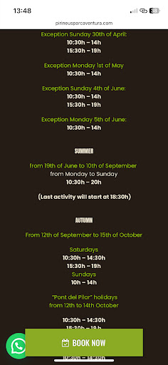 Read moreTenemos casa en Esterri y venimos cada año y cada año cobran más caro, actividades que hemos hecho mil veces, en fin se puede entender. Lo que no se entiende es que el año pasado con un año menos no tuvo que subir acompañada y ahora “te obligan a que suban hasta los 9 años con un adulto” al que por supuesto le cobran la entrada pagar por subir a unas tirolinas para niños de 9 años?? Me parece una “genialidad”, entiendo las dificultades económicas de la crisis que hay y la inflación… no obstante, no voy a dejar de expresar favor mis sentimientos en este momento, consciente de lo subjetivo que es, y al mismo tiempo tan personal como legítimo… me quedo con el sabor amargo que te queda cuando por no quitar la ilusión a tu hijo admites pagar un precio que por supuesto no pagarías sabiéndolo de antemano, que estas aquí,no hay otra cosa y por no amargarle la tarde a los tuyos, cedes…. Han perdido la confianza que hemos tenido en ellos ( me refiero a la empresa) durante estos años.
