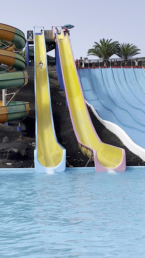 Read moreWe had a really great day here yesterday. I was very skeptical having read other reviews so it surpassed expectations. We bought tickets on the door which were no more expensive than on the website and we didn't have to queue for more than a few minutes. The site was perfect for our family, children age 11 and 8 were very happy with the selection of rides plus the lazy river (which was very slow so did require quite a lot of self propulsion), a diving pool and the wave pool. Hardly queued for rides at all despite it being mid August. Only 2 rides plus the lazy river required rings, we did not spend the 5 Euros for these and didn't regret it. There are green\blue rings available for the rides that require rings and the staff were good at making sure they stayed with the appropriate rides. We never waited more than a few minutes for a ring and there were plenty of rides to do without. However, this was undoubtedly helped because so many visitors did seem to have rented the yellow rings and spent the day either lugging them around. The food was much better than expected. I didn't think the meal deal that you can buy with the entrance ticket was especially good value and, the cafe actually had more to offer than burgers and hot dogs. There were also pizzas, sandwiches, pasta and salads. We had an approx 12inch margarita pizza, 2 fries, 2 coffees and a can of pop for 22Euros and this was a nice snack which kept 4 of us going for the afternoon. Drinks were 2-3 Euros and the pastas and pizzas were all about 10 Euros. The food was made fresh to order and was actually very good. We had taken a small, refillable insulated bottle of water in with us in for our youngest who won't drink a can of pop and I can't bear unnecessary plastic waste. I suspect had we made this blatantly obvious then it would have been taken off us but he was able to sip it by the lounger. The park did not feel especially busy and there were lots of spare sun loungers to use.
