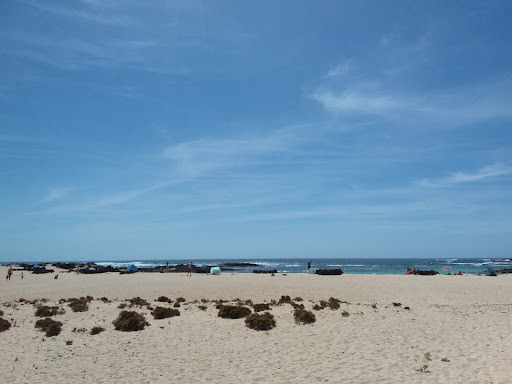 Read moreGreat beach! Beautiful white sand, contrasted against black volcanic rock and clear turquoise water. Offshore rocks protect against the impressive Atlantic waves, leaving wonderfully calm lagoons along the beach. West facing aspect affords amazing sunset views. Generally few crowds, except in peak season. Warm enough to tan all year round, but cool in the evenings. Would be 5 stars but for the ever-present wind and fairly run down state of the town. But prices are very reasonable. Wind can be avoided by using the natural stone shelters dotted around the beach....