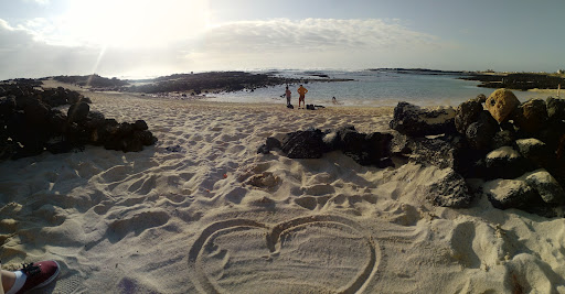 Read moreBeautiful... favourite place to visit . Catch the bus from top of Correlejo on the cross roads . Fare Is 6.20 euro for x2 one way . Bus will drop you off at bus terminal or 5 mins from the beach. A few cafes and bars but nothing else in area . Beach is lovely and sheltered behind the Rocks in like a lagoon. At low tide you can walk quiet away across and their is a small shelf that drops down to shoulder height . Safe swimming but beware the wind can get quiet blowey and the tide a little stronger . Some building work is taking place near the beach looks like apartments? So the area may change over next few years . Definitely worth finding and not as many tourists as...